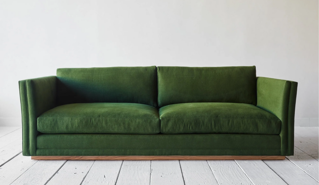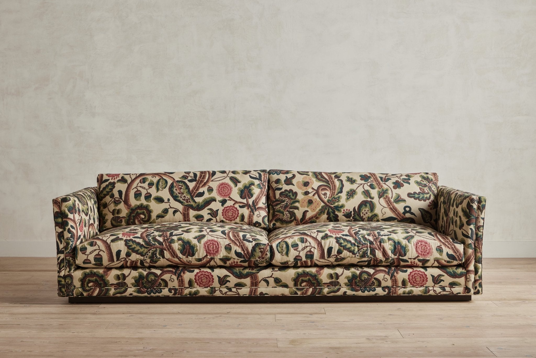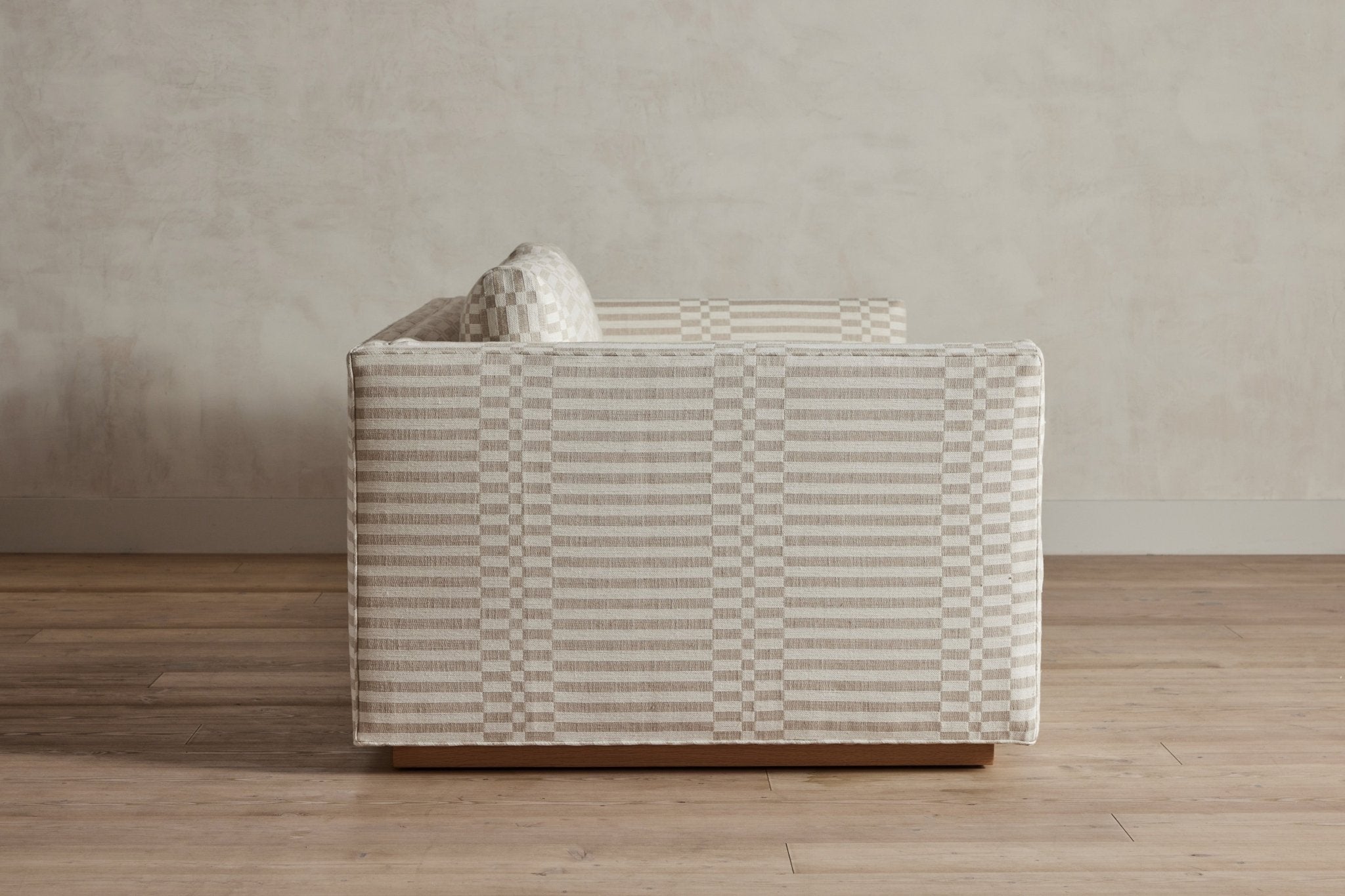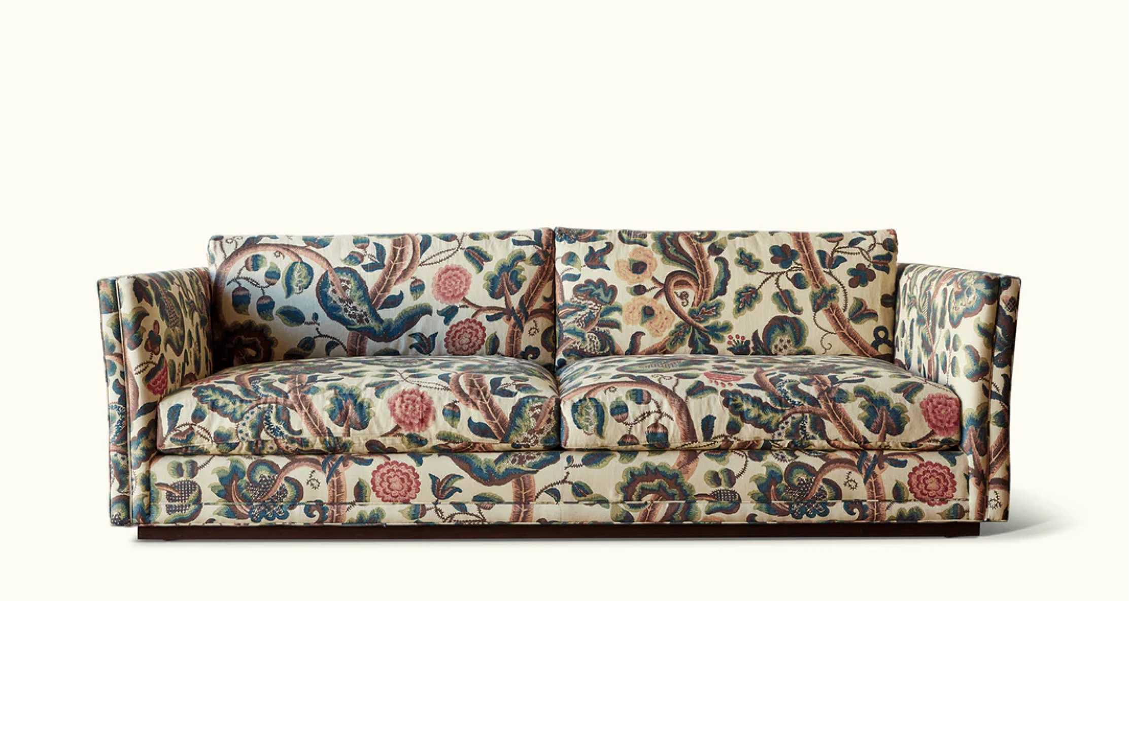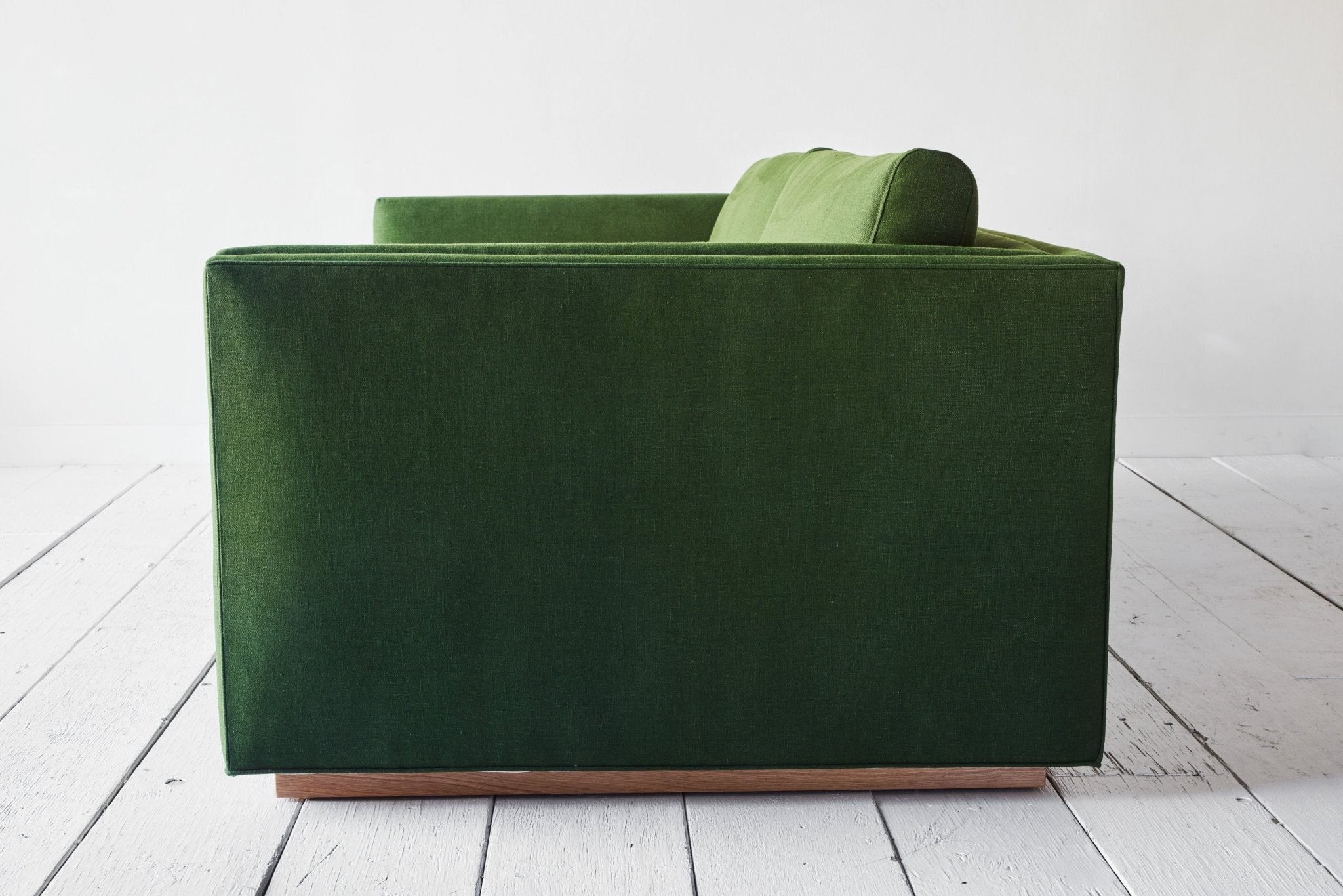 The gently flared arm of our favorite modern sofa creates a single elegant line, with generous depth in down-encased insets. A solid frame, precise piping and a recessed, shadow-base white oak plinth provide a sense of relaxed gravitas.