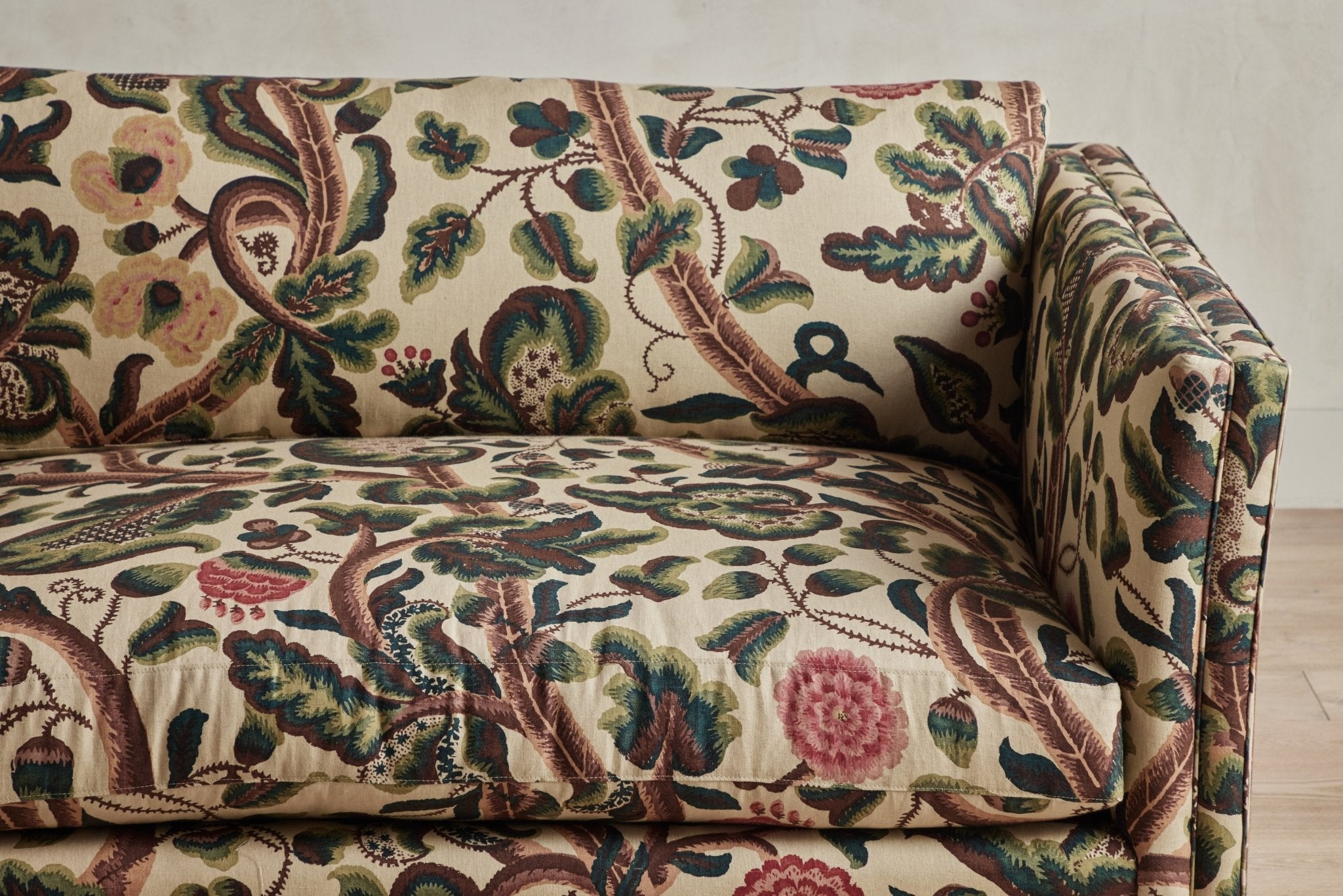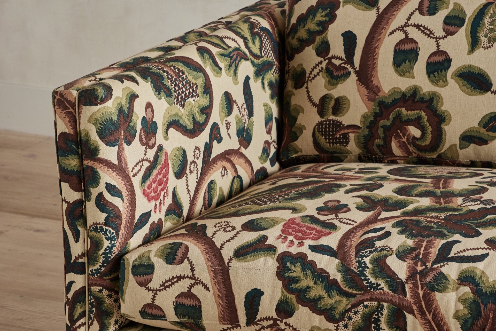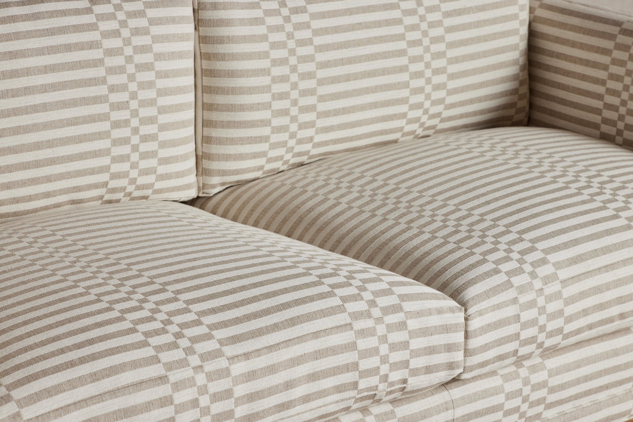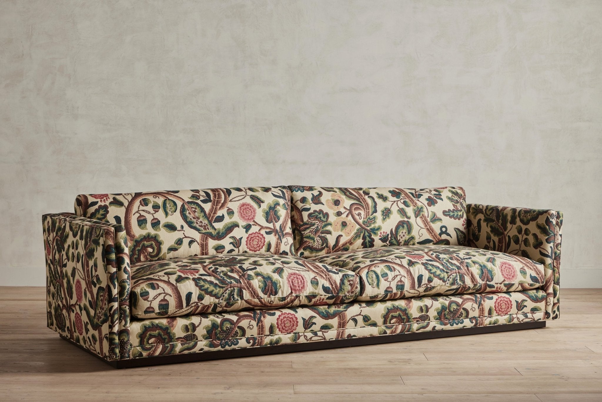 The gently flared arm of our favorite modern sofa creates a single elegant line, with generous depth in down-encased insets. A solid frame, precise piping and a recessed, shadow-base white oak plinth provide a sense of relaxed gravitas.