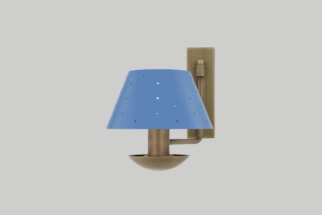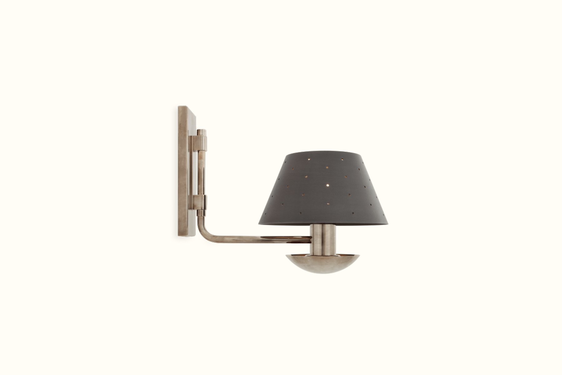 The Mazarine Wall Sconce is timelessly au courant, and a perfectly tailored wall accent. Available as hard or soft-wired, or with a perforated metal shade for a more industrial look and feel. Pictured in heirloom with blackened pewter shade and antique brass finish, the shade’s color and sconce finish can be customized to your space and taste.