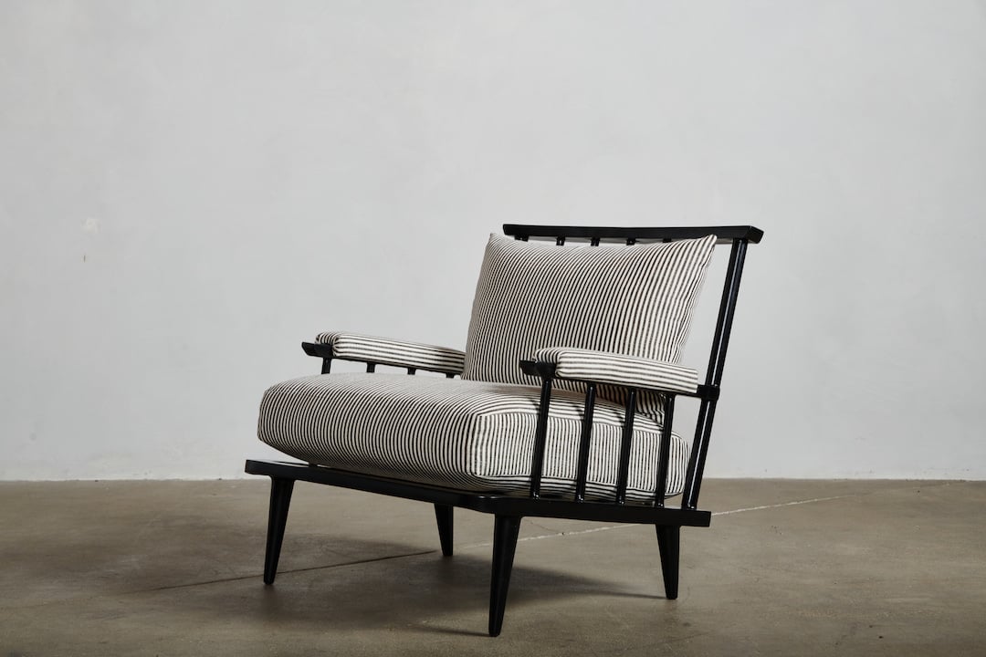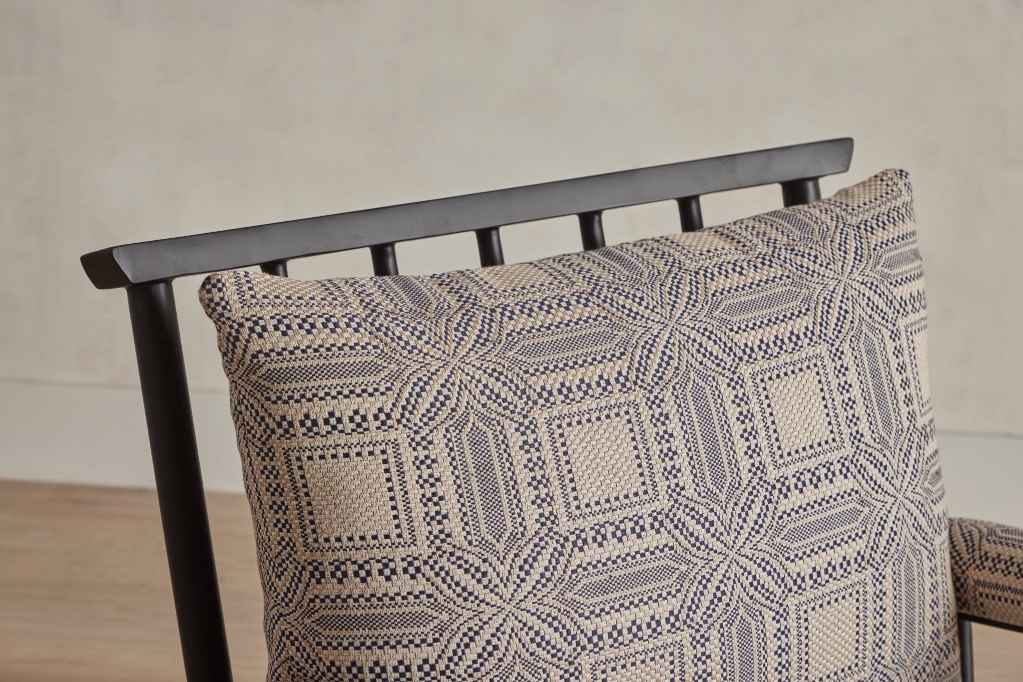 An open silhouette draws the eye, a rigorously designed aluminum cast frame allows for decades of use. Painted metal frame with upholstered armrests, and outdoor cushions with high-density foam core encased in hypoallergenic gel fiber give this chair a down-like feel that is calming and cool, yet able withstand nature’s most unexpected elements.