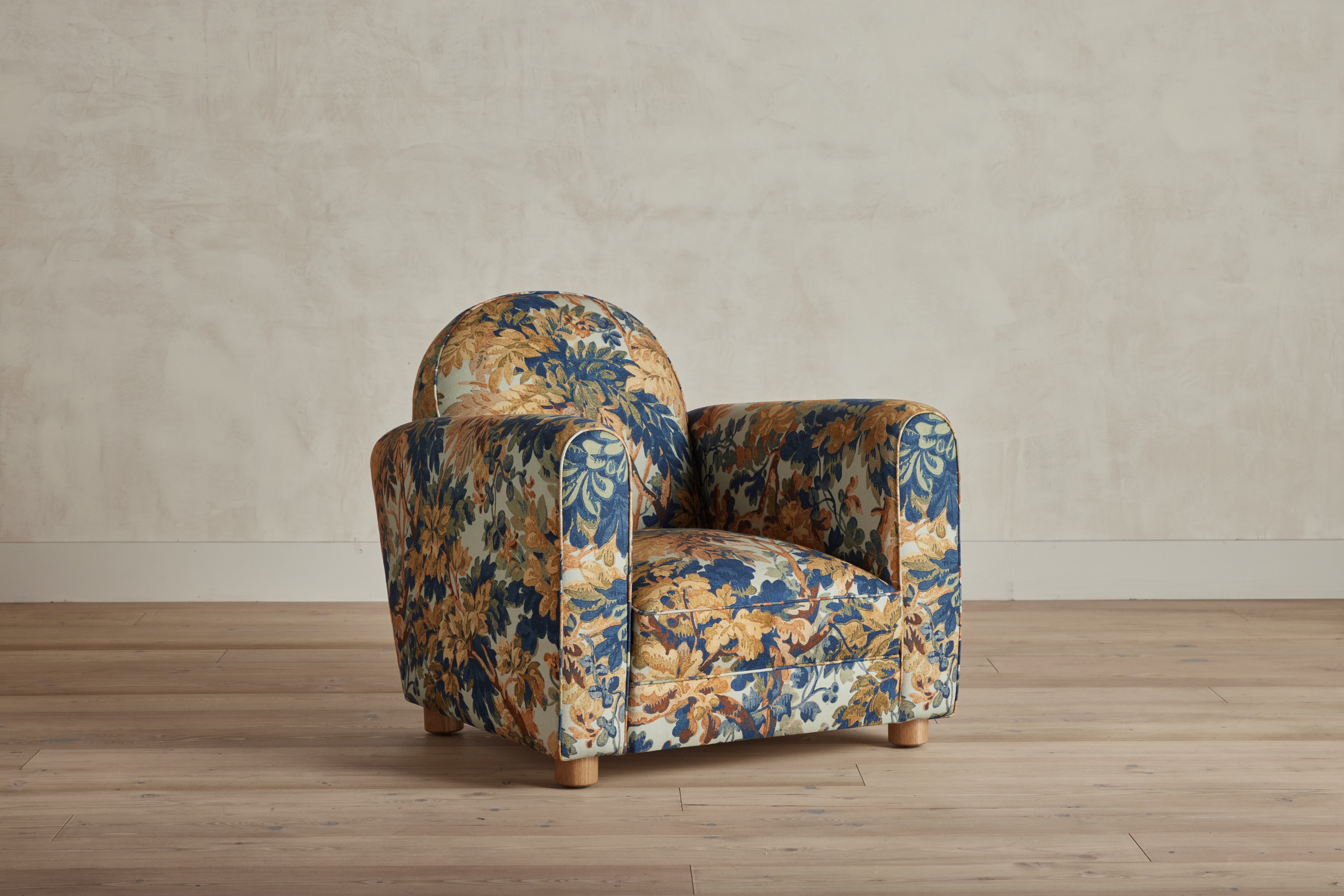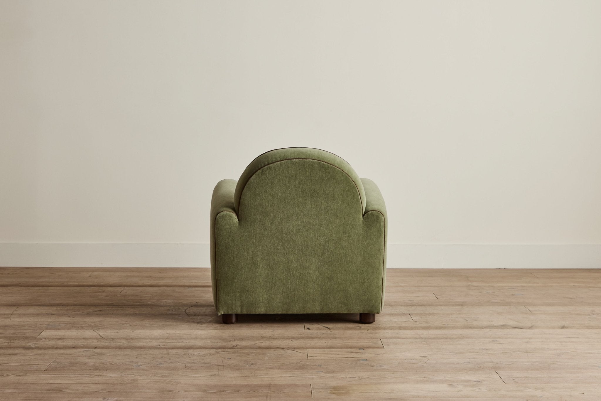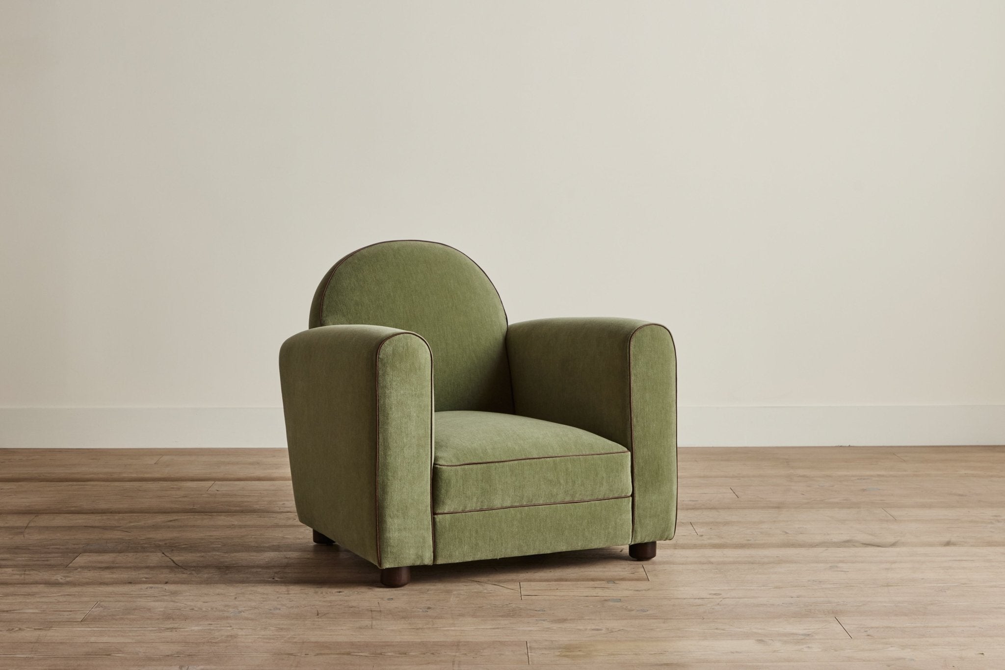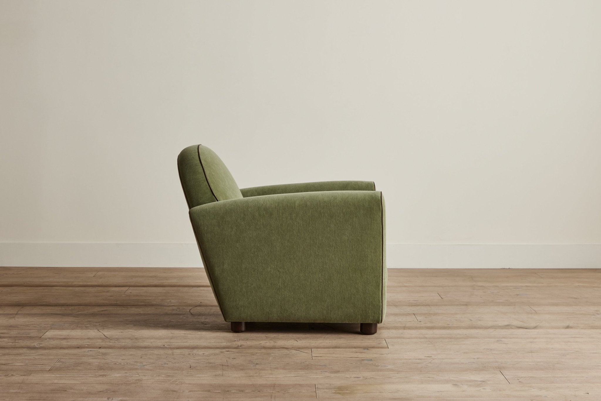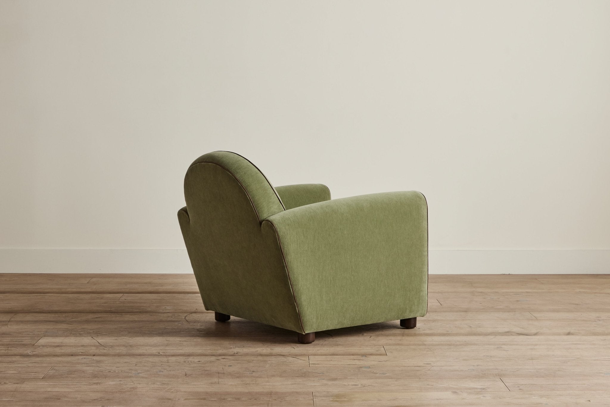 Our forward-thinking take on the classic 1930s Parisian Club Chair features pared down line-work with gently sloping arms. A taut cushion with a down-feather crown sits atop a high-density foam core, carefully considered with increased depth and an elegantly tailored width, finished with a white oak peg foot.