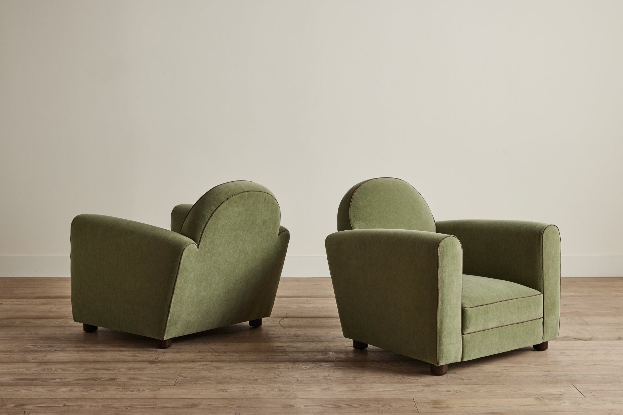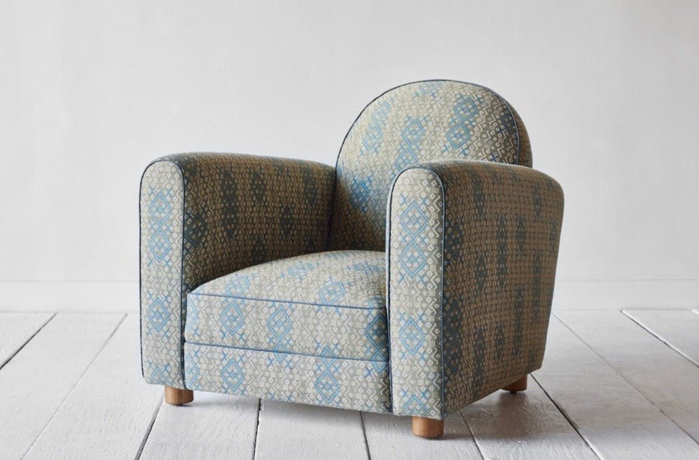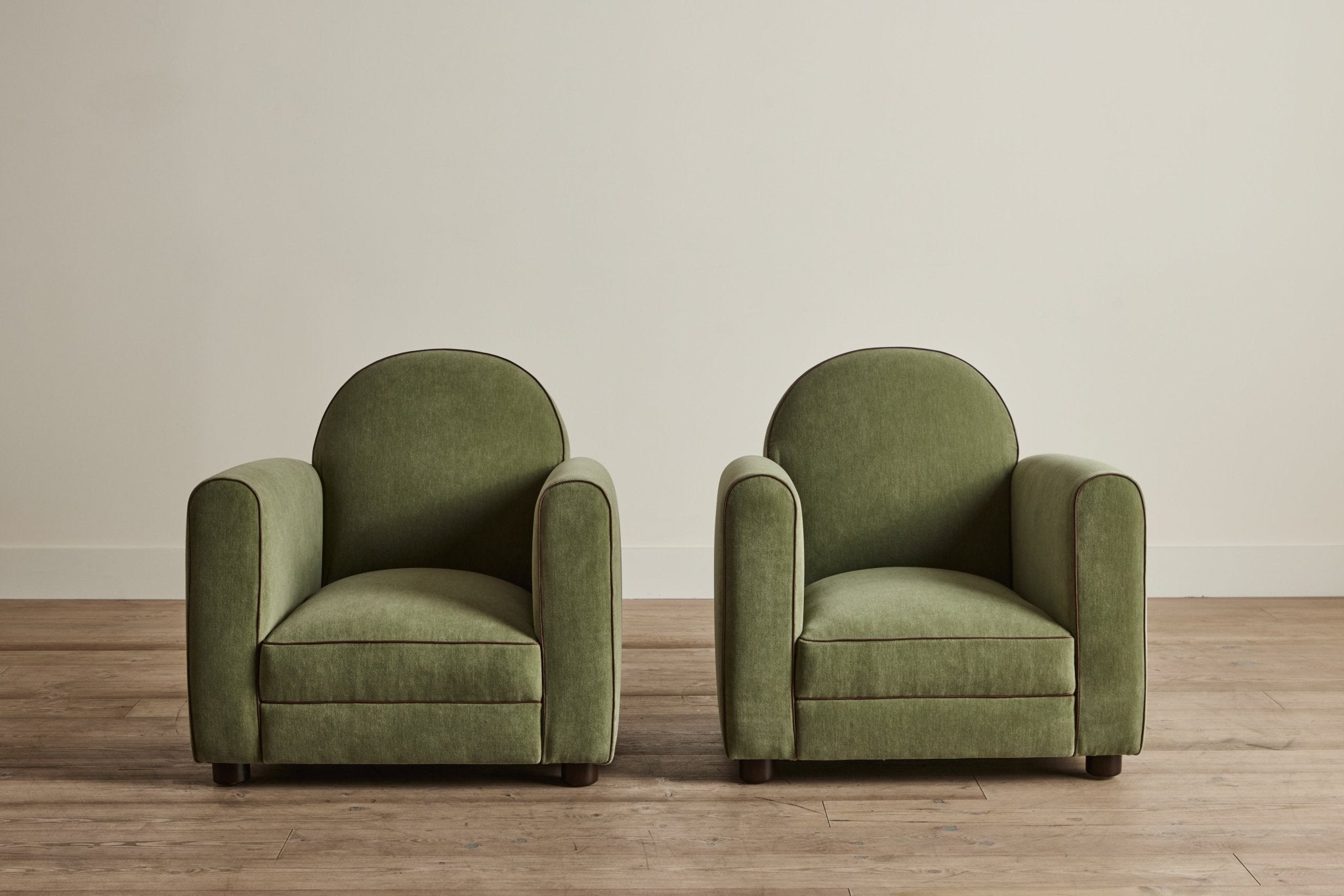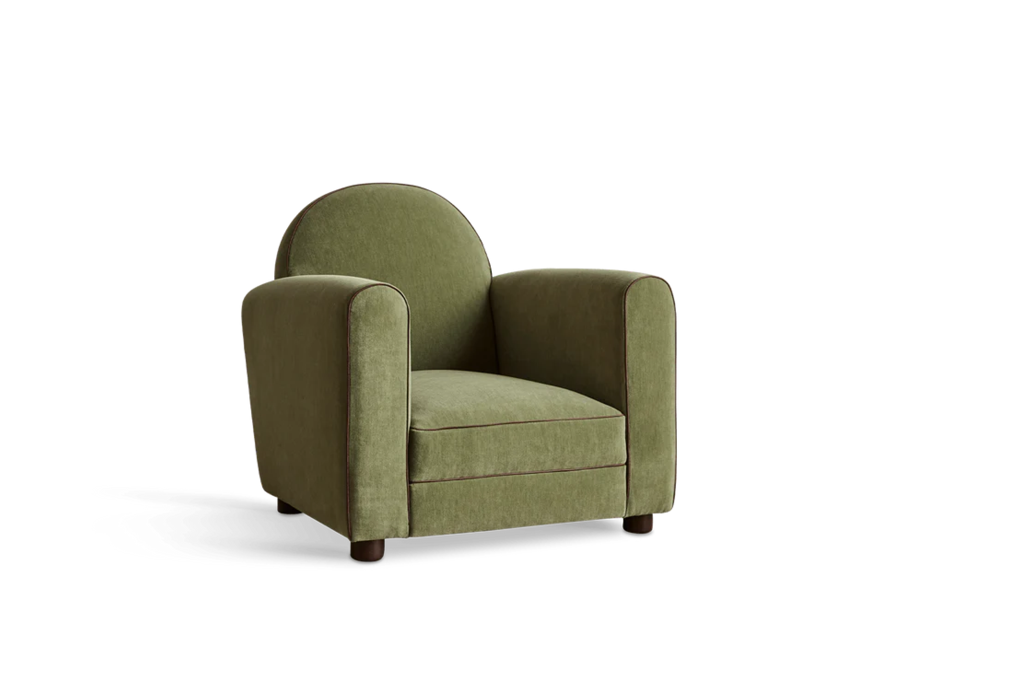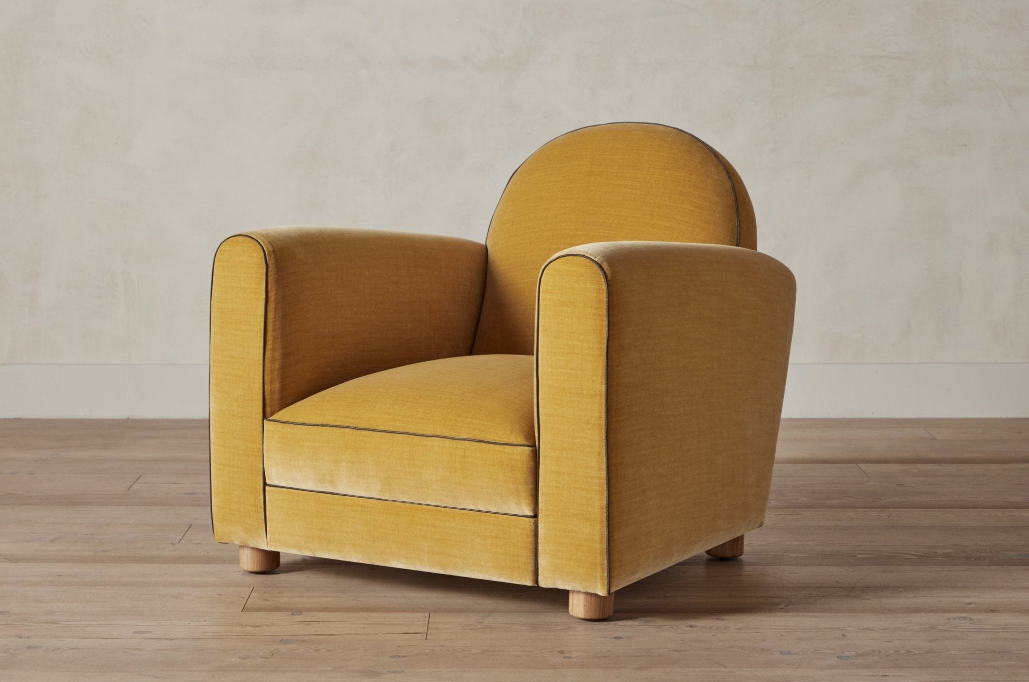 Our forward-thinking take on the classic 1930s Parisian Club Chair features pared down line-work with gently sloping arms. A taut cushion with a down-feather crown sits atop a high-density foam core, carefully considered with increased depth and an elegantly tailored width, finished with a white oak peg foot.