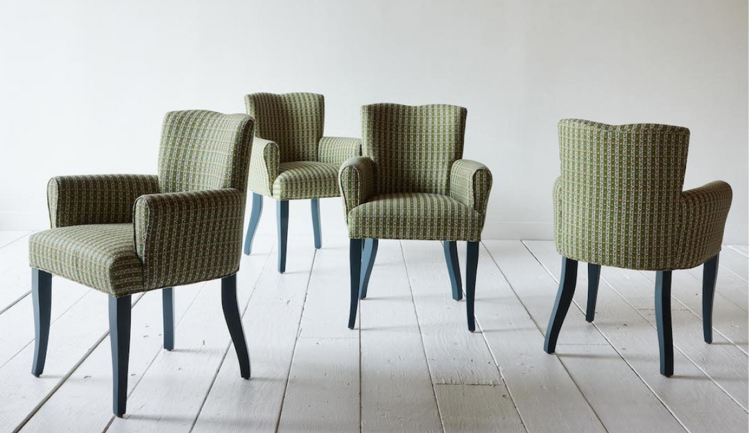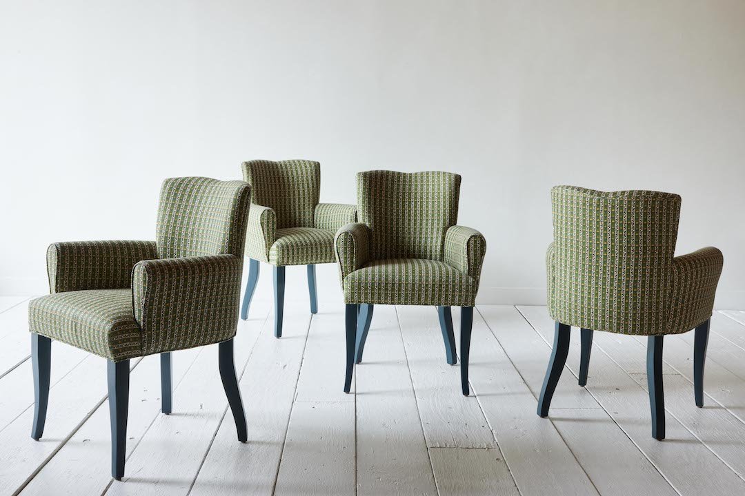 Reinventing the classic game chair, the NK Club Dining Chair balances curved white oak legs and gently sloping arms with a strongly defined seat back and fine-tuned pitch. A chair that suits any personality, choose a designer-selected finish, custom painted legs, tailored self-welting or contrast piping. Perfectly at home at your dining table, or a focal point all on its own.