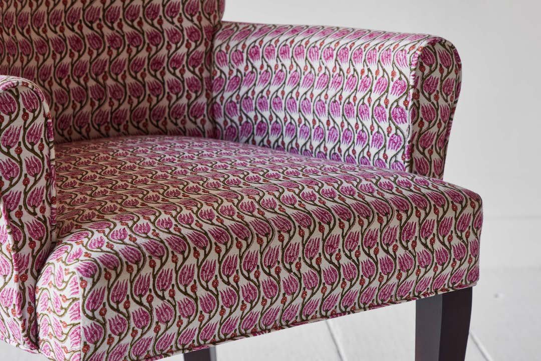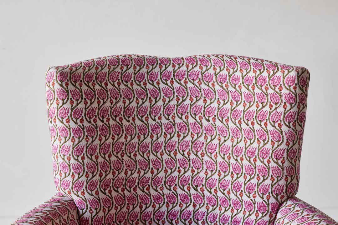 Shown in Customer's Own Material (Namay Samay Gulnaar Rose) and Painted Finish (Farrow & Ball Bancha No.298)