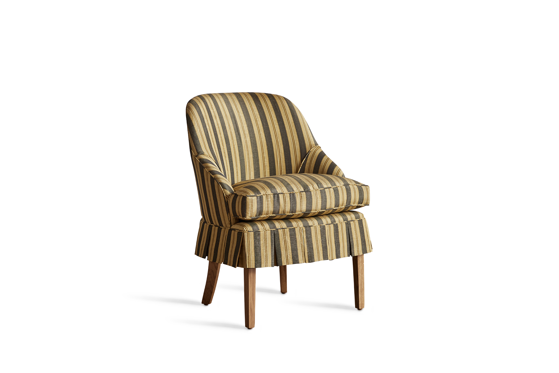 Our simplified expression of a classic Napoleon III slipper chair is finished with a pared-down scallop-edged skirt, designed with a lumbar pitch for table-side seating. The seat cushion features a down feather crown for flexibility on either side, while a removable cover with back zip closure and corner tie-downs maintain each chair’s essential character - sophisticated, impeccably designed, but not taking itself too seriously.