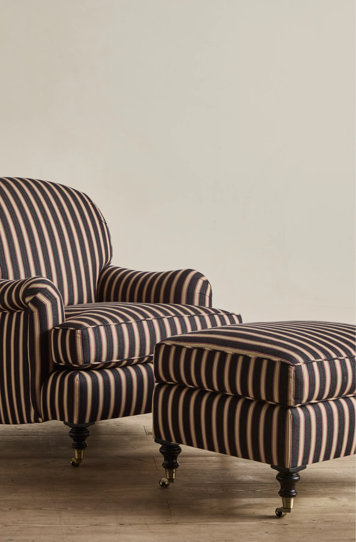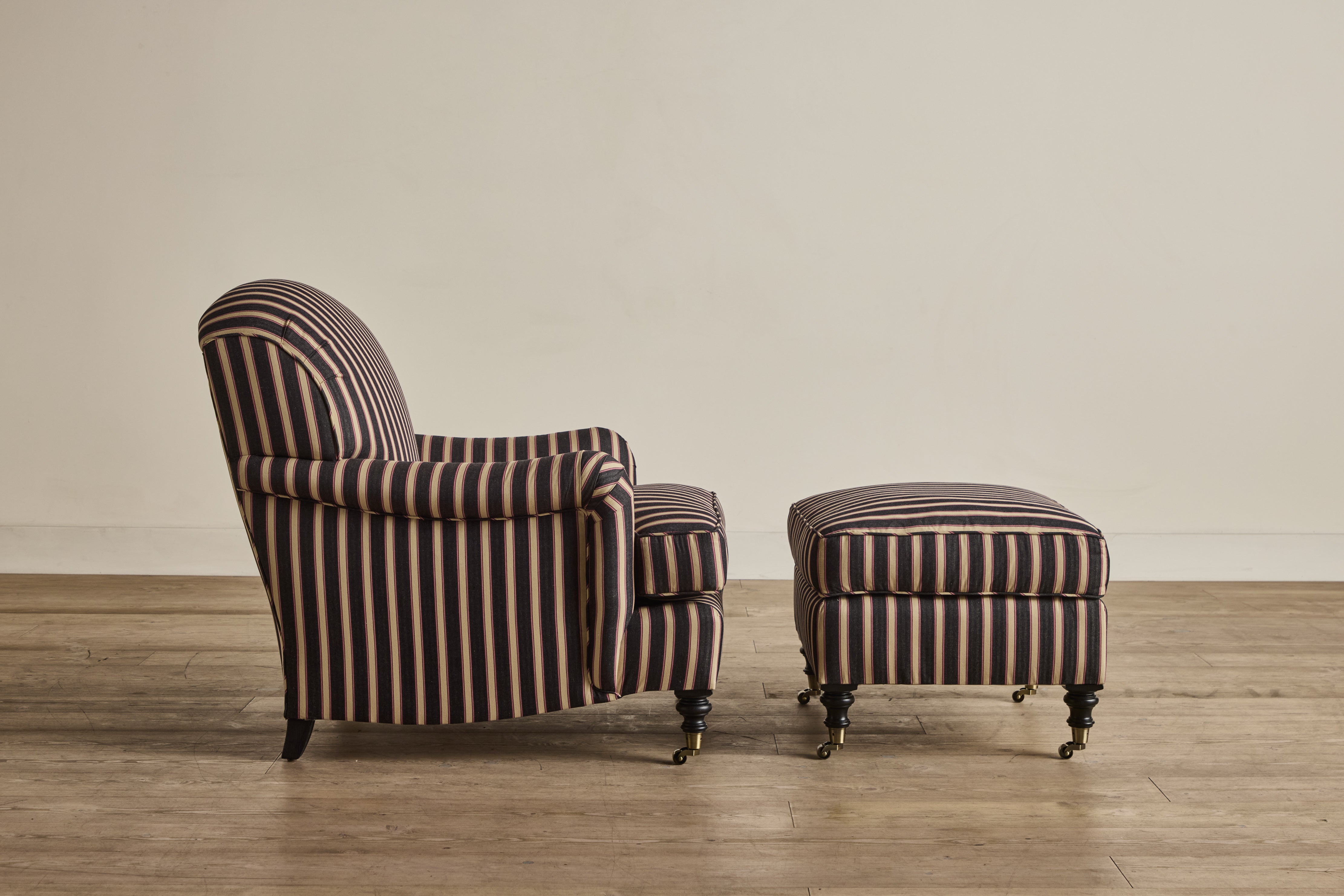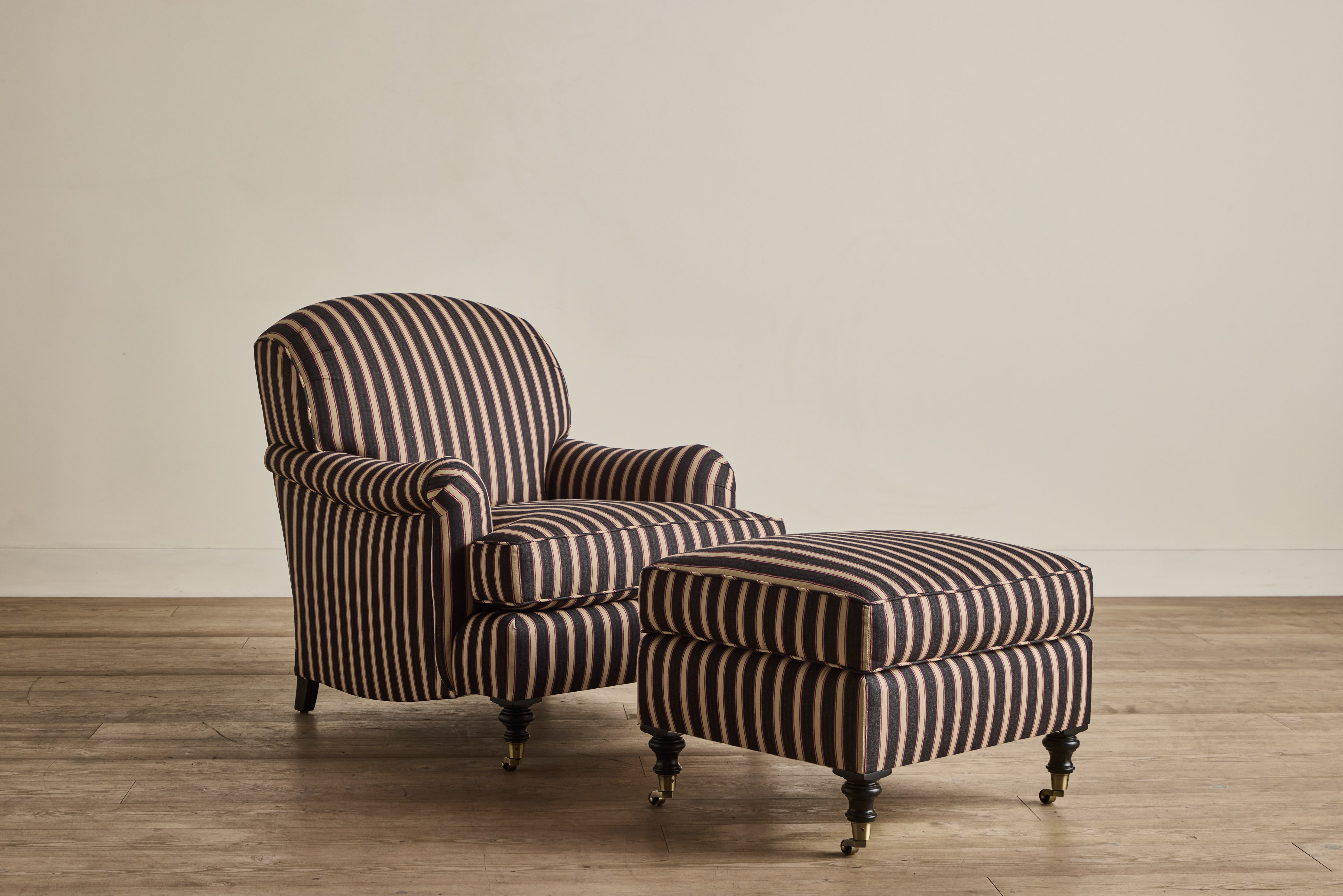 Shown in Howe Satin Stripe and Dark Oak with Matching Ottoman, Large Size