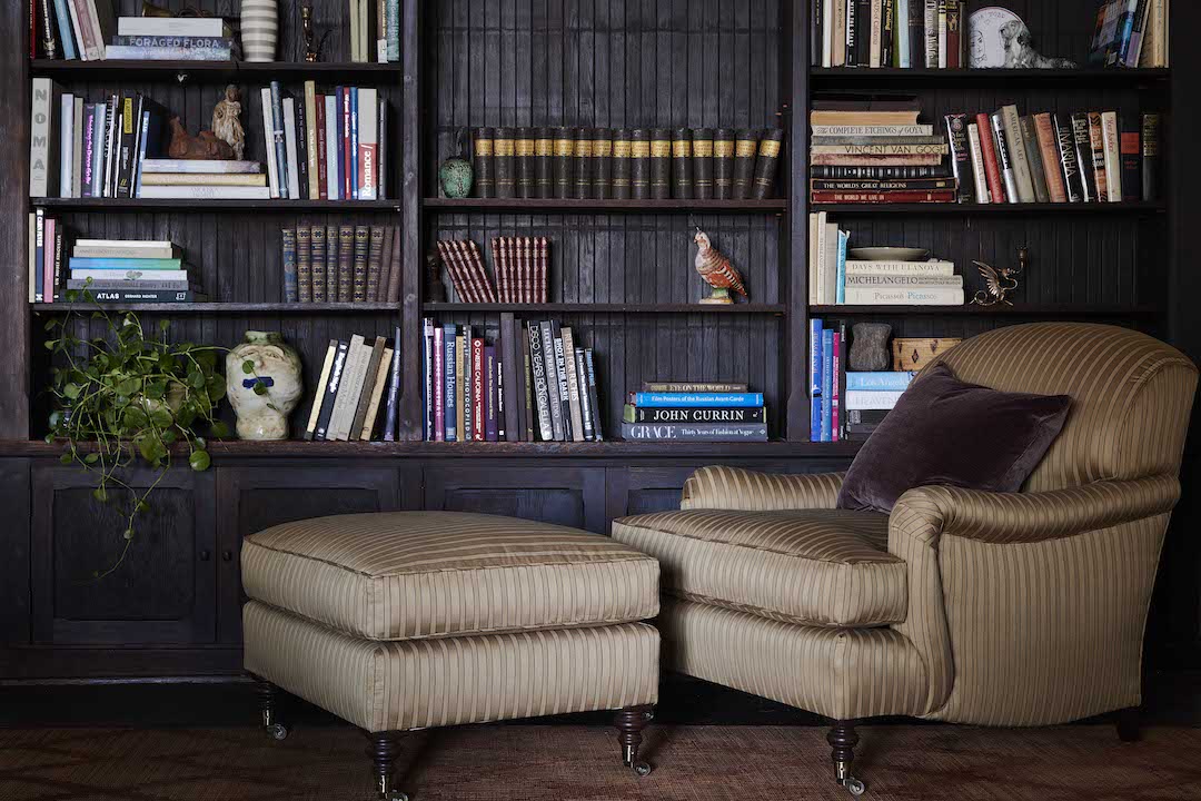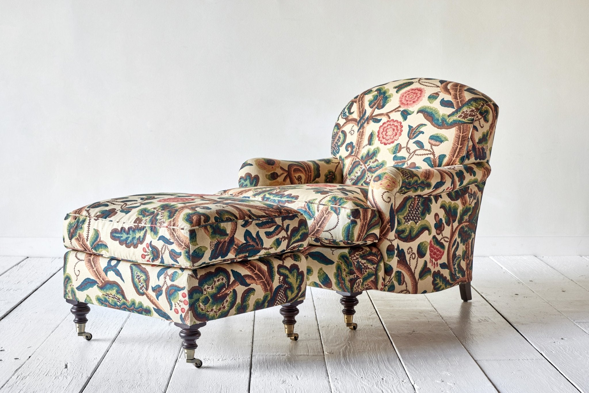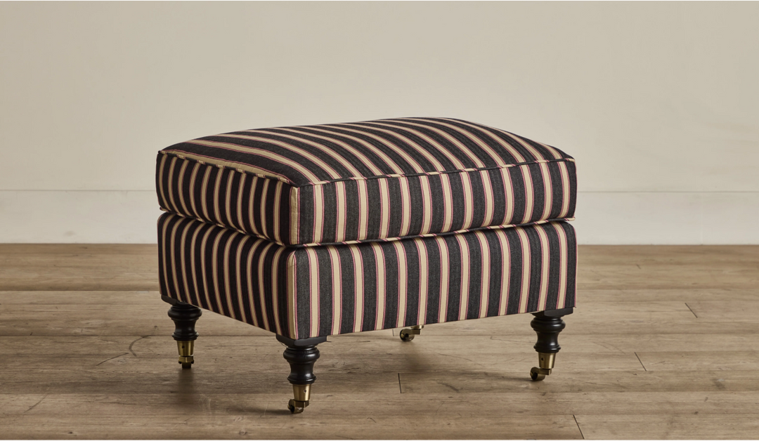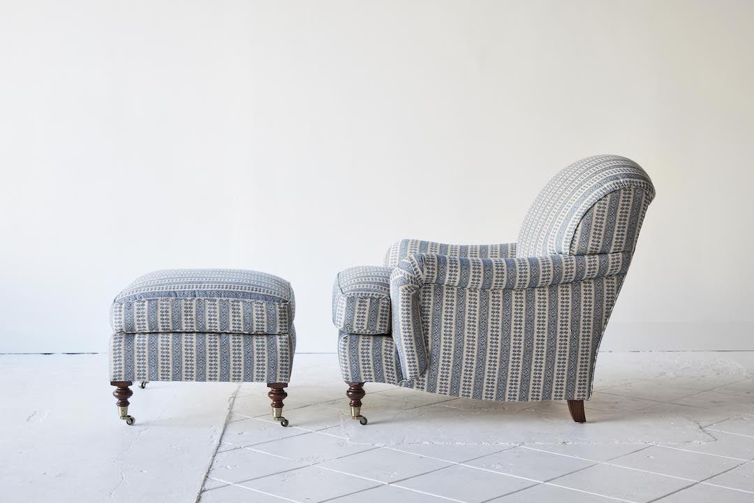 Shown in Howe Satin Stripe and Dark Oak with Matching Ottoman, Large Size
