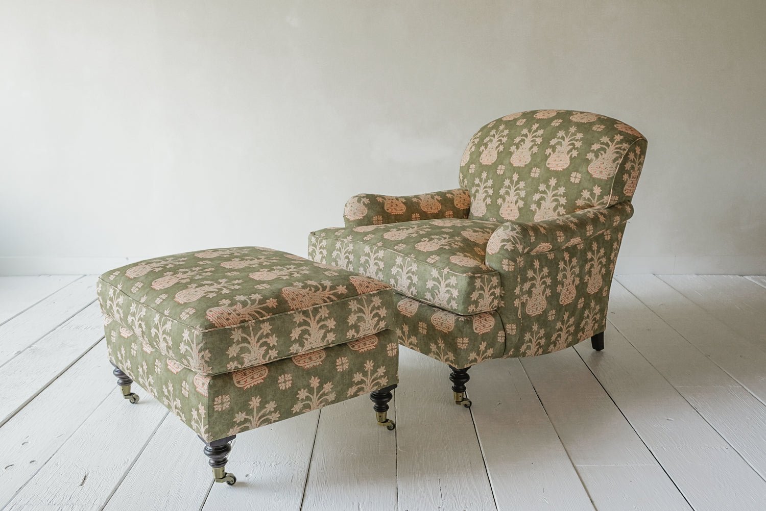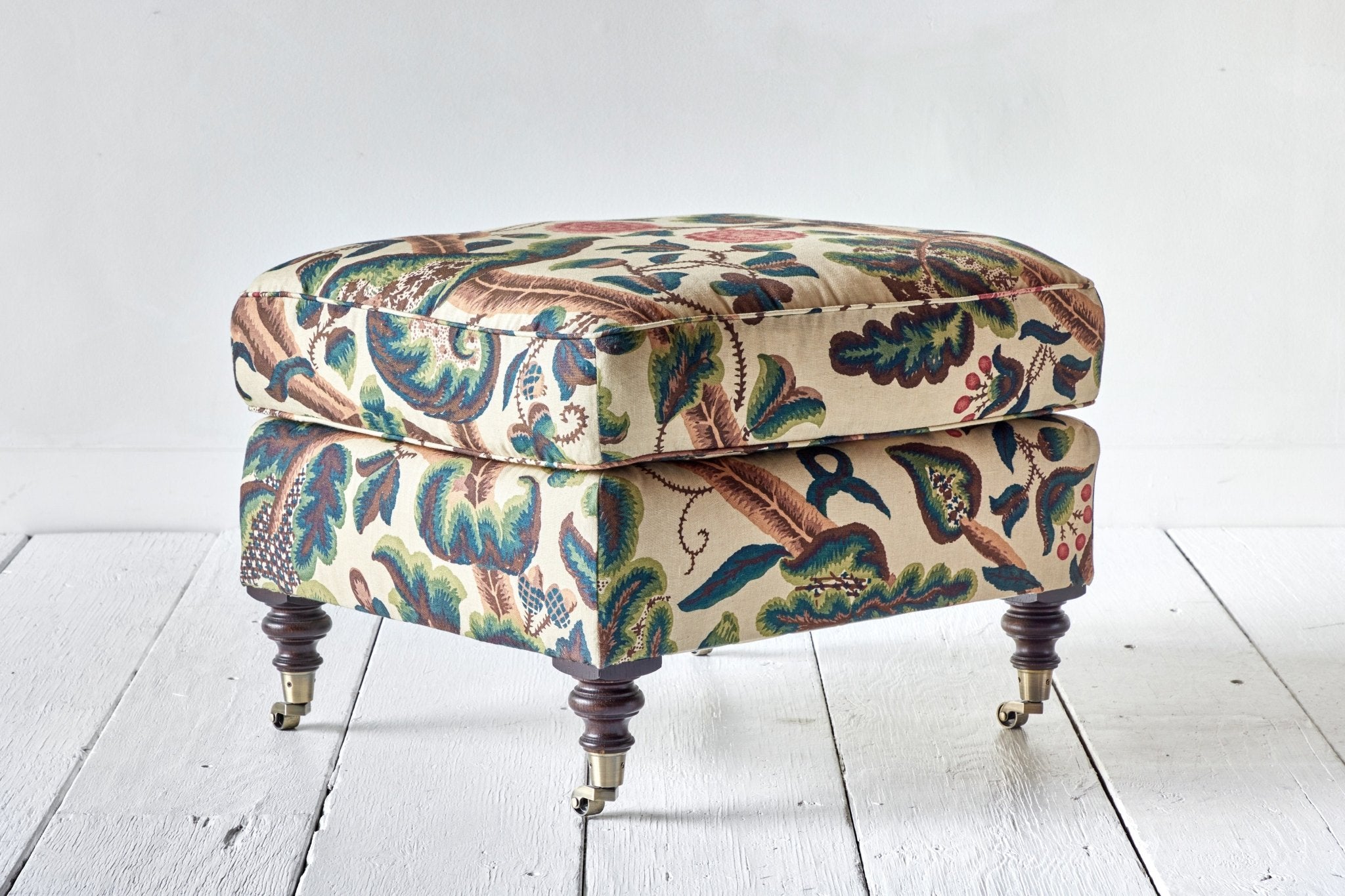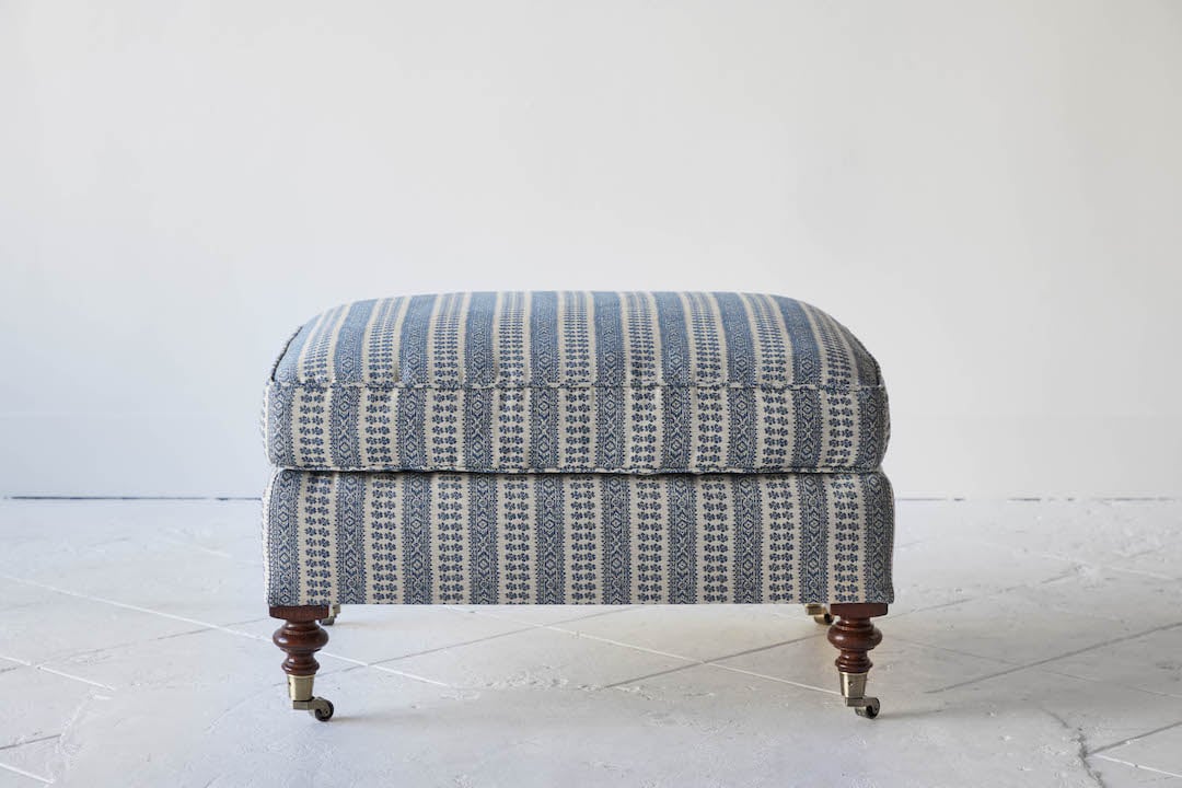 A luxurious addition to our English Roll Arm Chair, this plush ottoman invites you to sit back, put your feet up and enjoy your own sanctuary. The English Roll Arm Ottoman is a smart update on a classic, designed for contemplative rainy days, good gossip and lively entertaining - even for a party of one. Light the fire, grab your favorite book (or device) and curl up in high style.