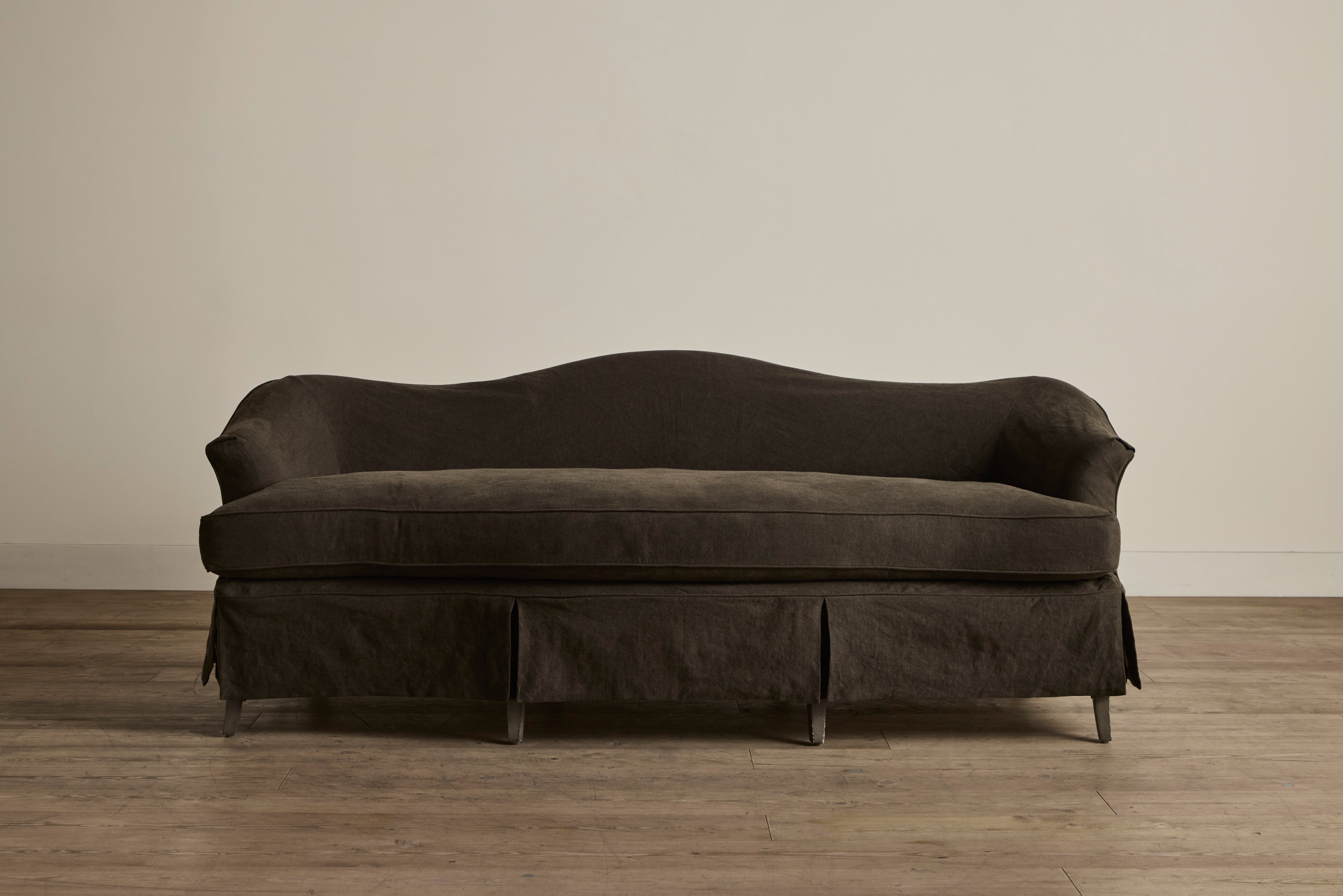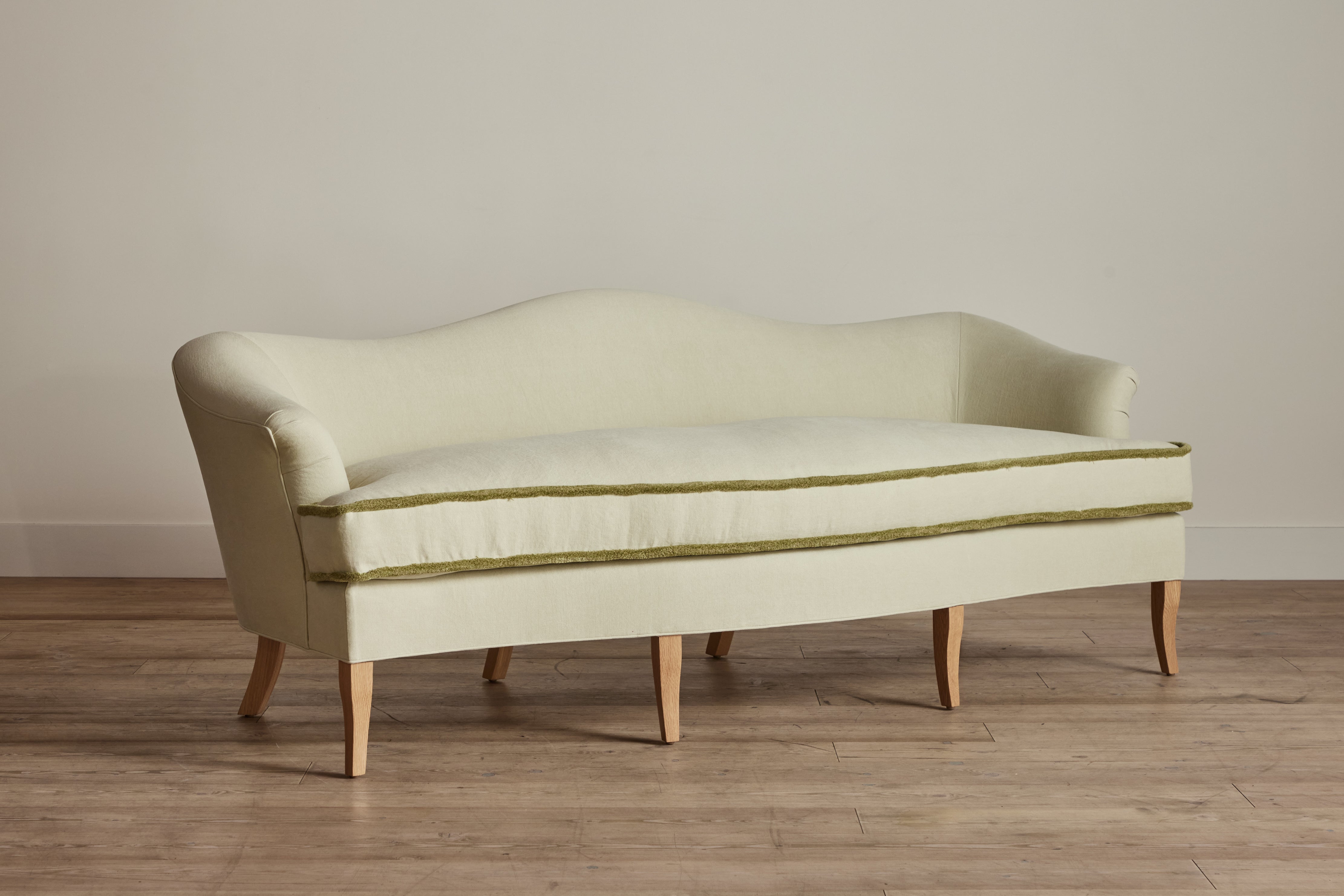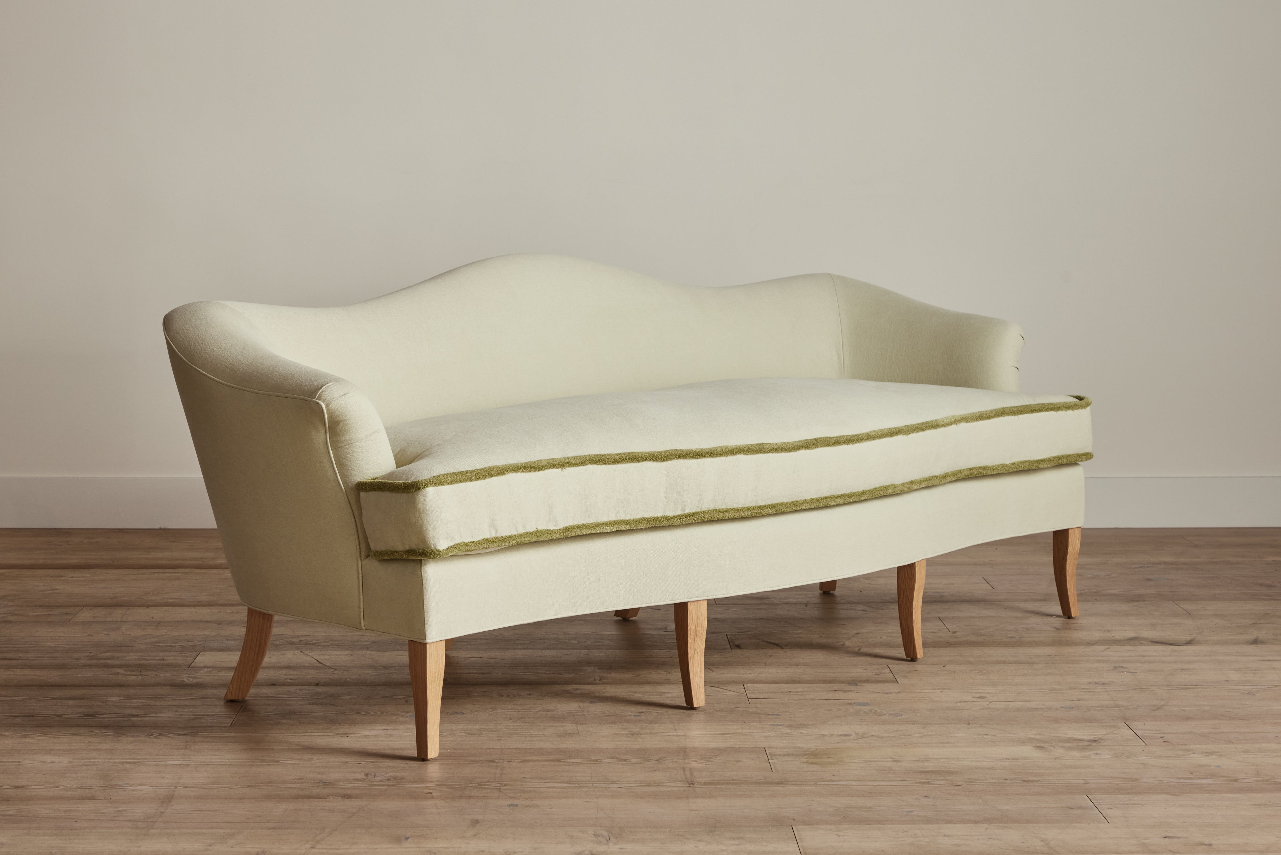 The classic camelback silhouette gets a sleek new update. A precisely curved back and legs combine well-proportioned details into an eloquent stunner of a sofa. The seat is removable, with discreet built-in cushion fasteners. Versatile yet distinguished, a modern heirloom that invigorates any space.