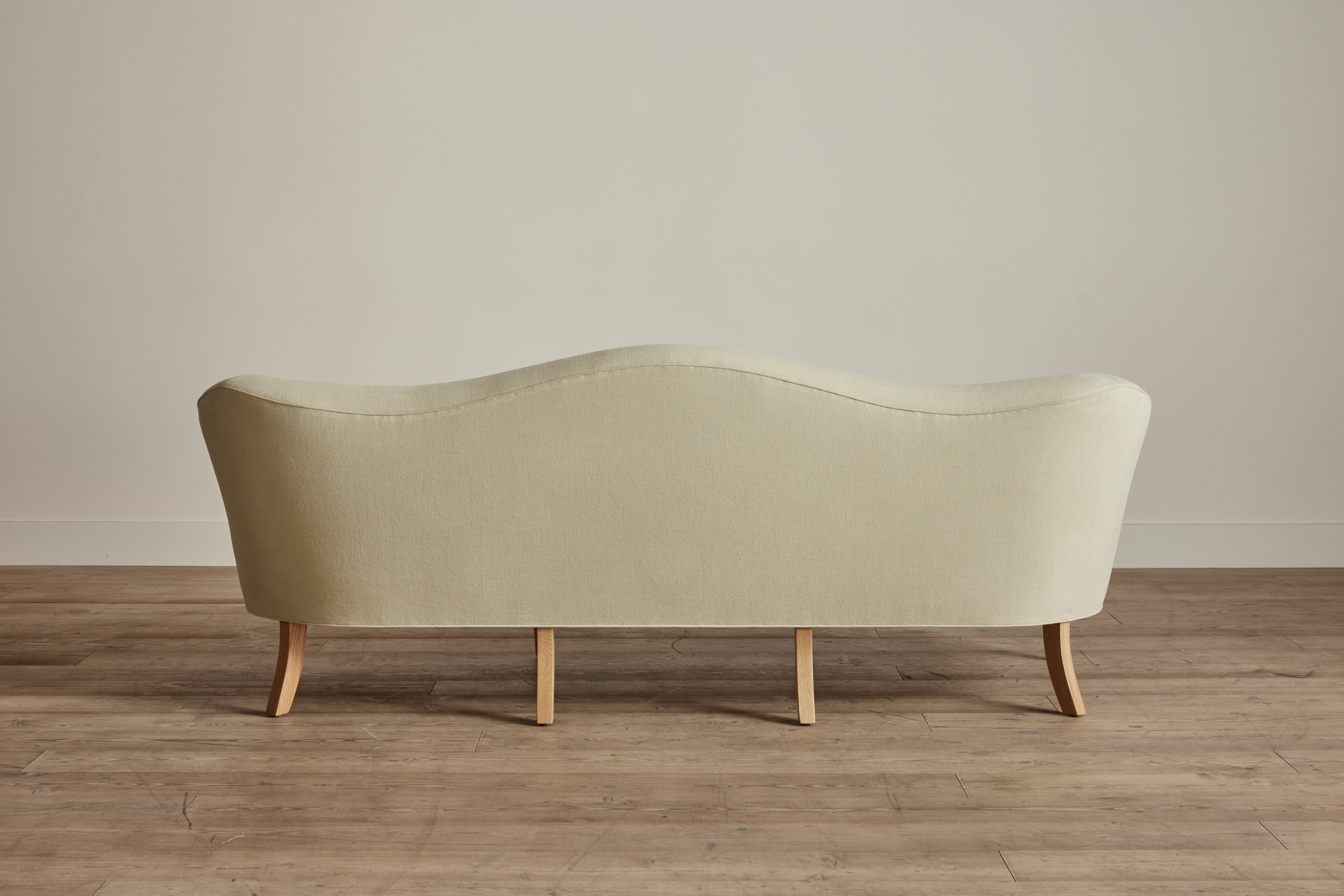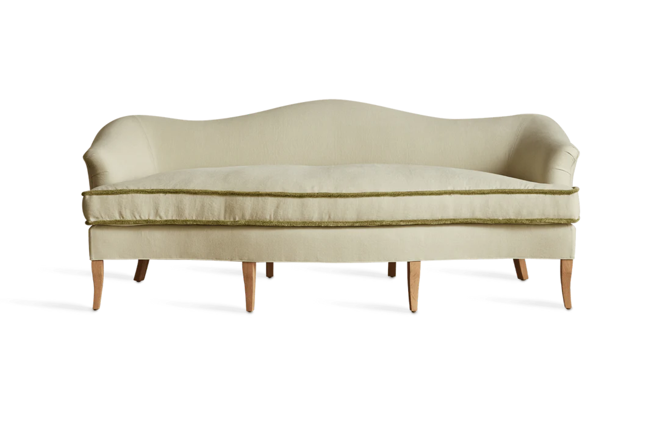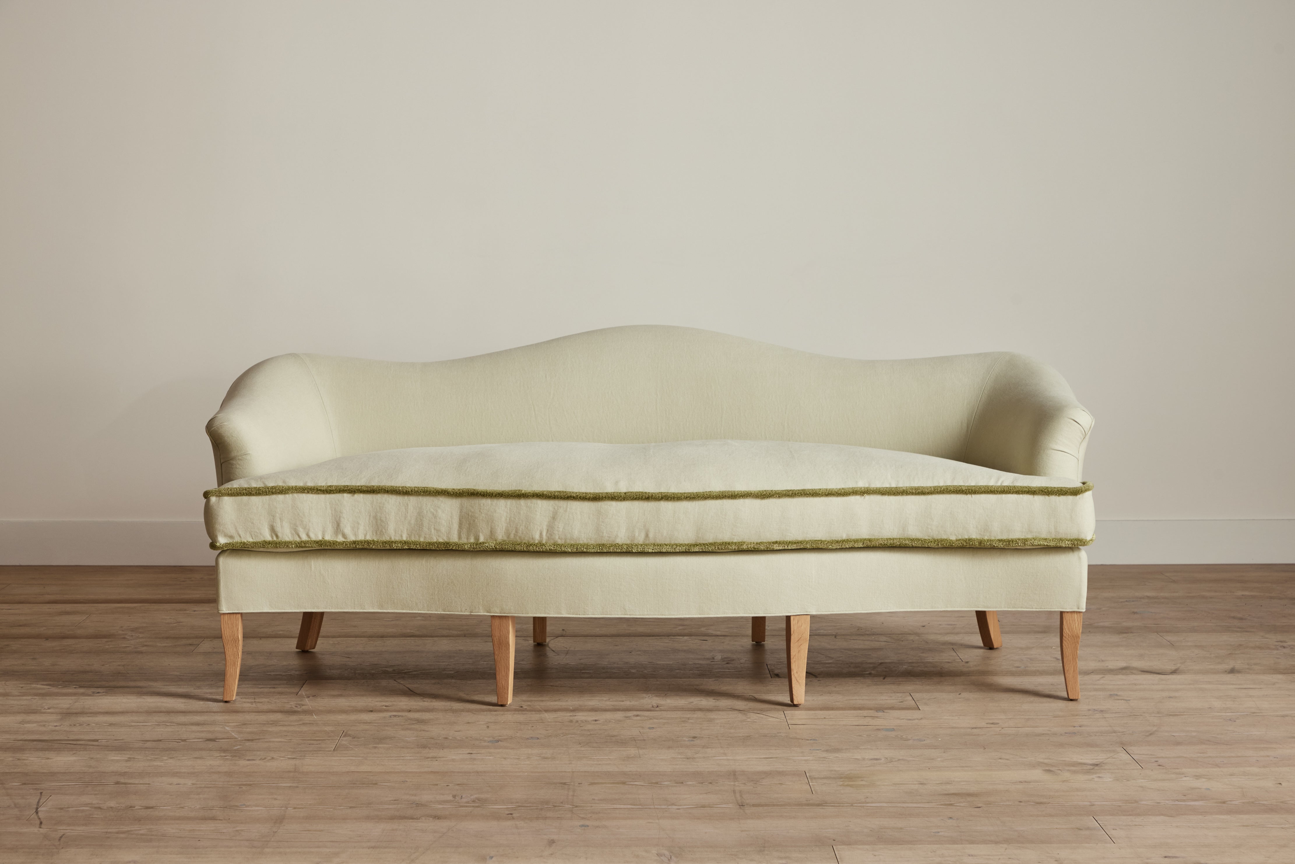 The classic camelback silhouette gets a sleek new update. A precisely curved back and legs combine well-proportioned details into an eloquent stunner of a sofa. The seat is removable, with discreet built-in cushion fasteners. Versatile yet distinguished, a modern heirloom that invigorates any space.