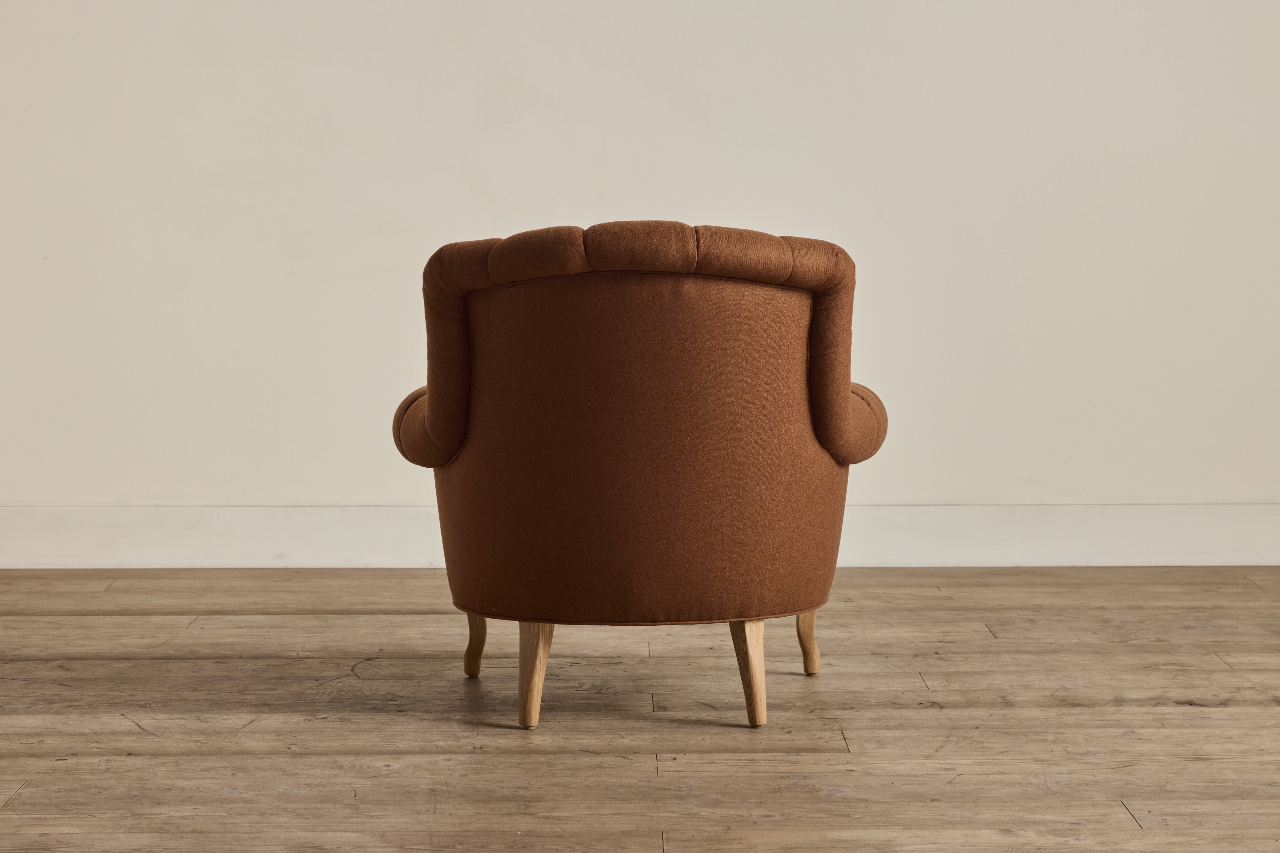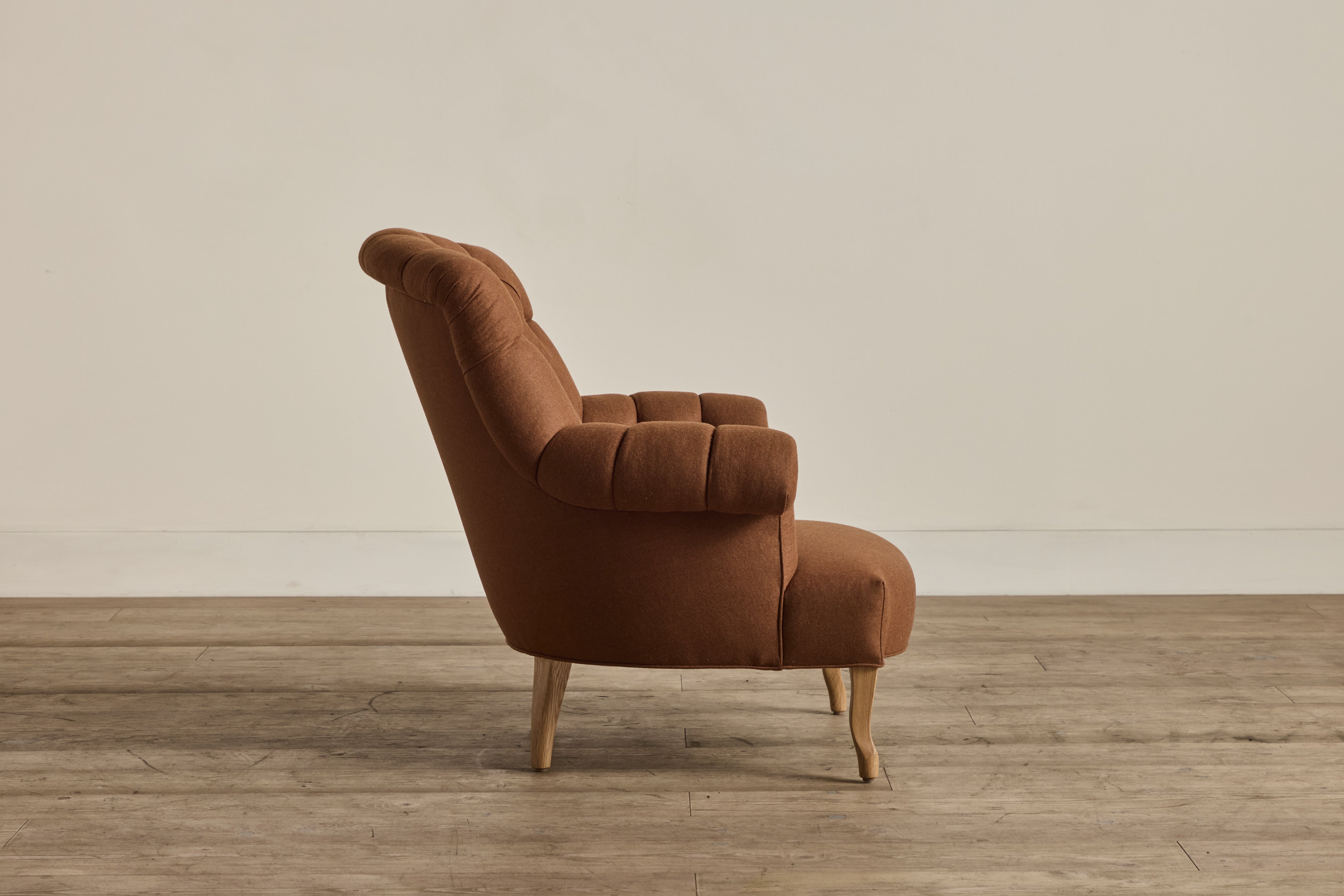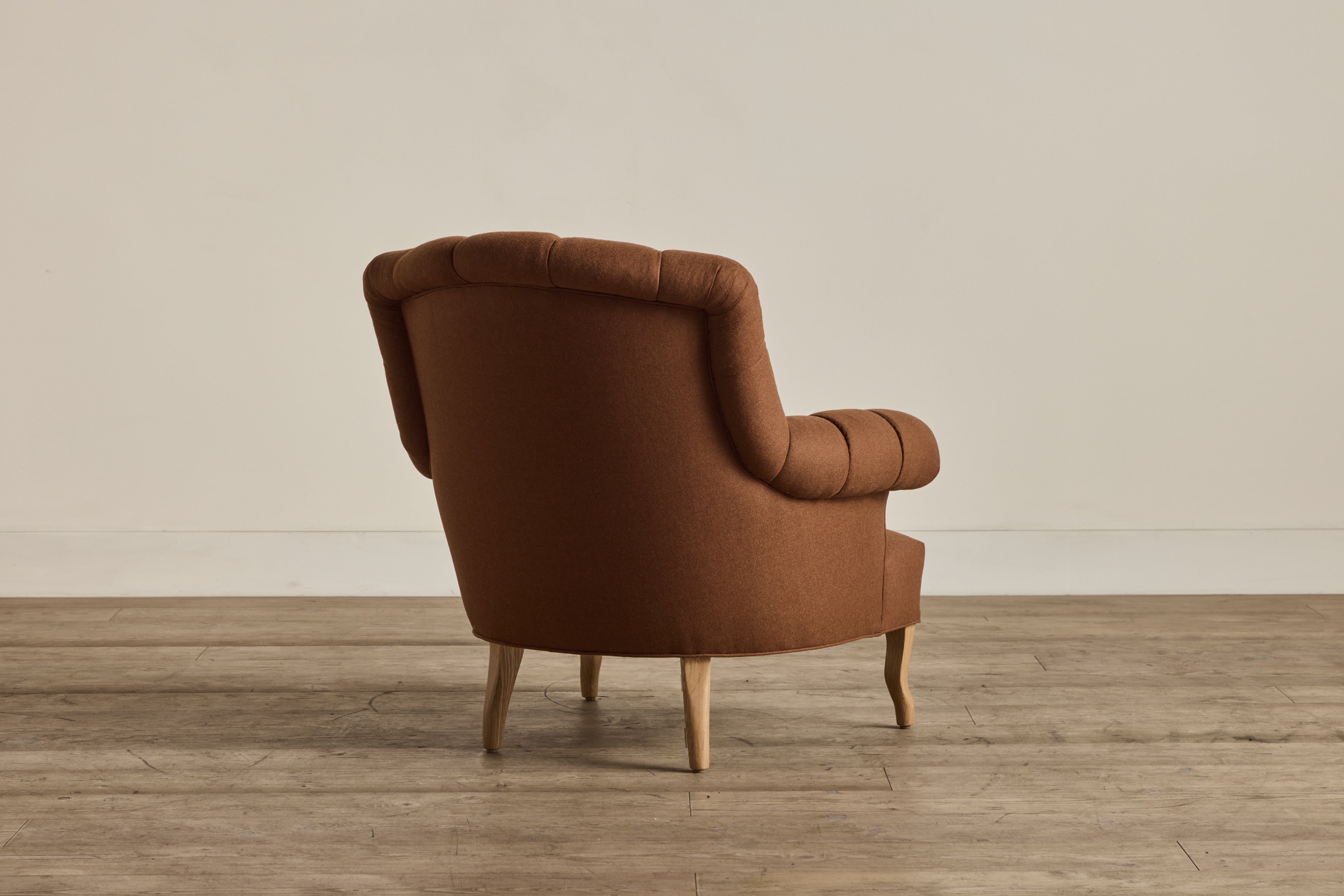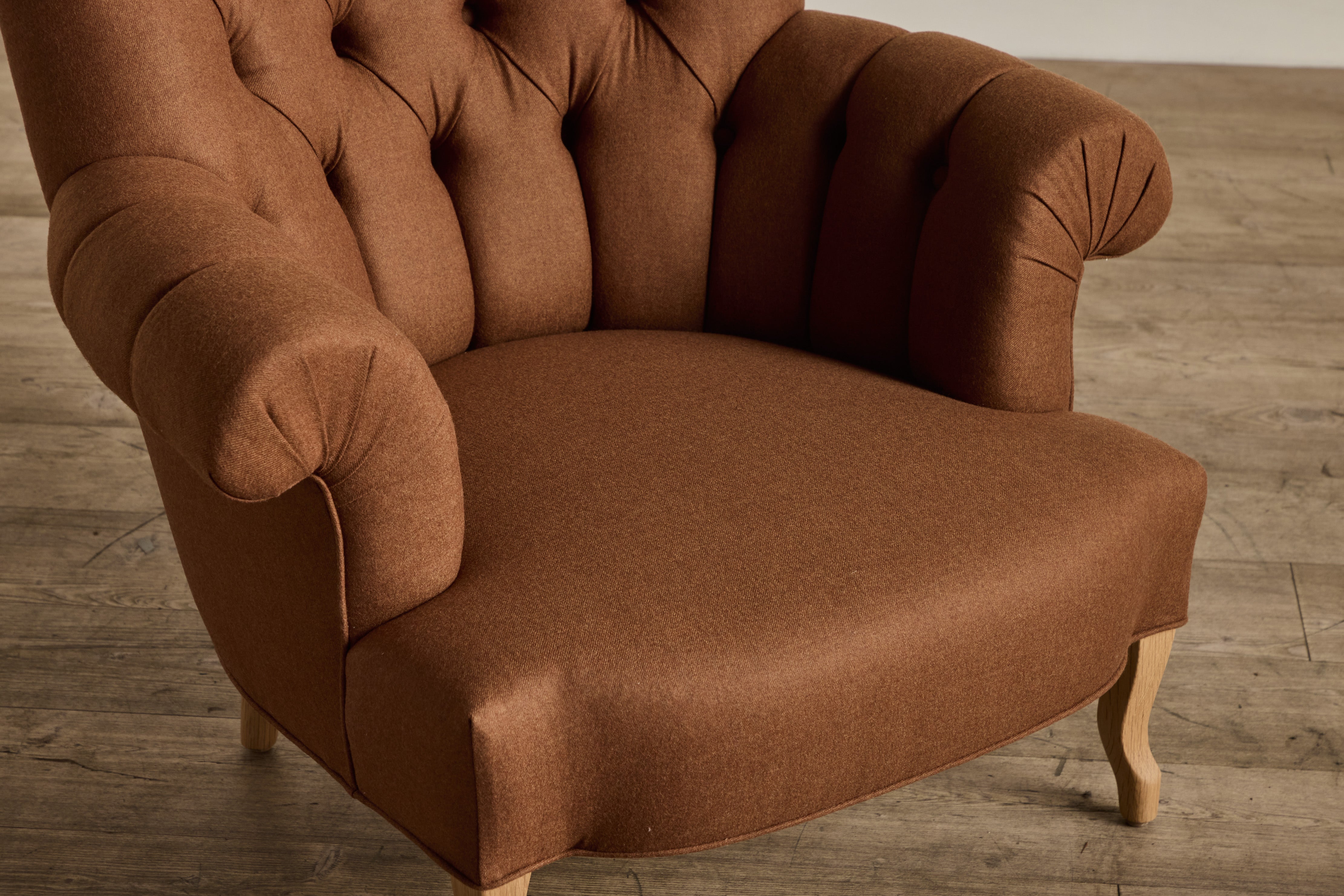 A true heirloom piece. Delightfully feminine as much as it is masculine, this distinct take on a traditional armchair imposes a great presence with a modest footprint. The button-tufted seat back sits upright while leaving plenty of room for comfortable repose. Pair with the matching Library Ottoman for even longer hours of lounging.