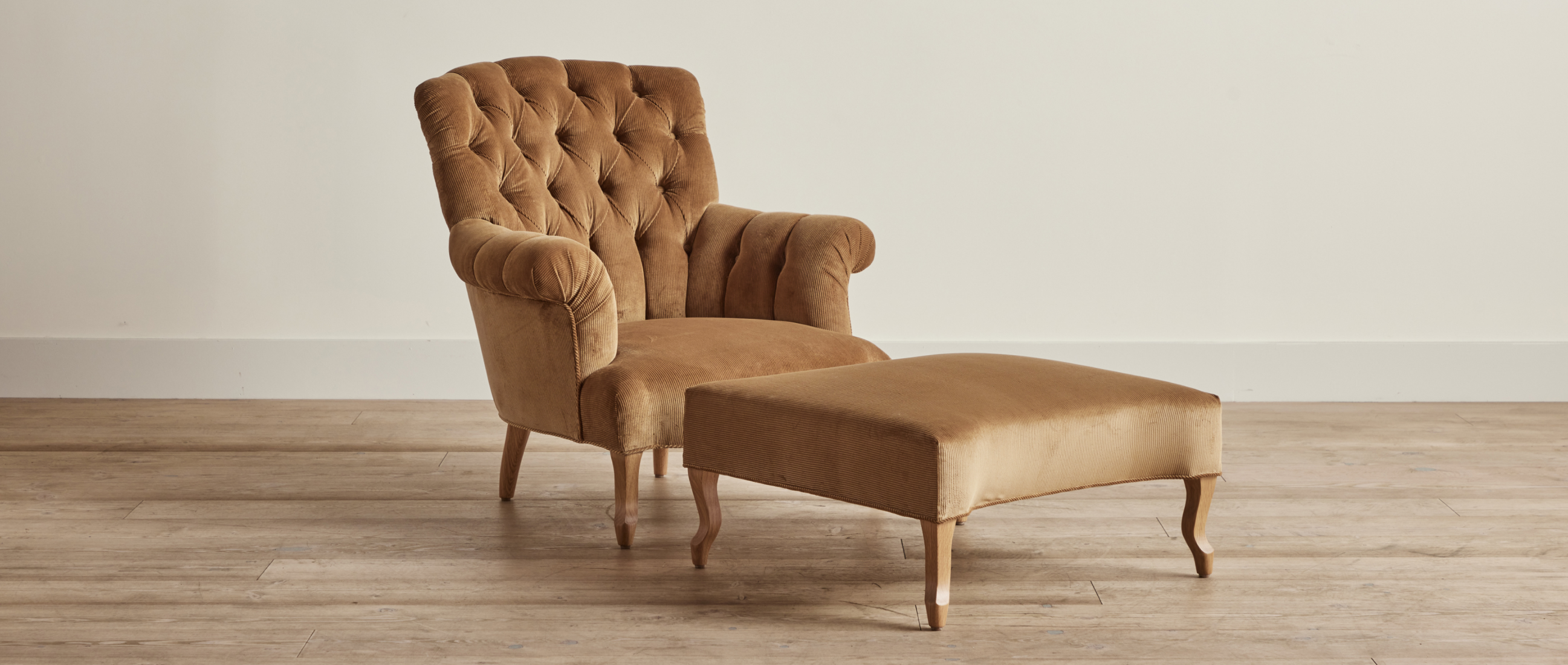 Shown in Holland & Sherry Camel Corduroy and Natural Oak